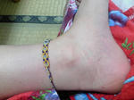 足が赤いのは、正座したら型がついただけです。