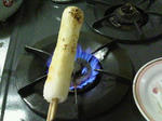 そいで、勝手がよく分からんので、取り敢えず菜箸をさしてあぶってみた(笑)